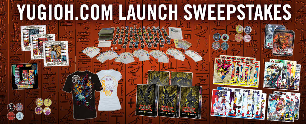 The Sweepstakes taps into the enthusiastic fan base with an incredible prize package of Yu-Gi-Oh! merchandise including the latest Yu-Gi-Oh! TRADING CARD GAME Products, Yu-Gi-Oh! DVD Box Sets, 25 Yu-Gi-Oh! Digital Manga Volumes from VIZ Media and a selection of new Yu-Gi-Oh! products just introduced to the marketplace in the last six months including t-shirts, and pin sets.